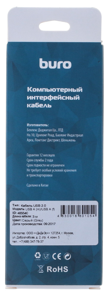 Кабель Buro USB A(m) USB A(f) 3м (BHP RET USB_AF30) серый (блистер)