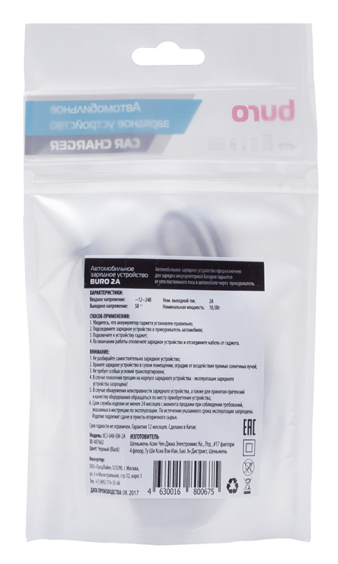 Автомобильное зар./устр. Buro XCJ-048-EM-2A 10.5W 2A черный