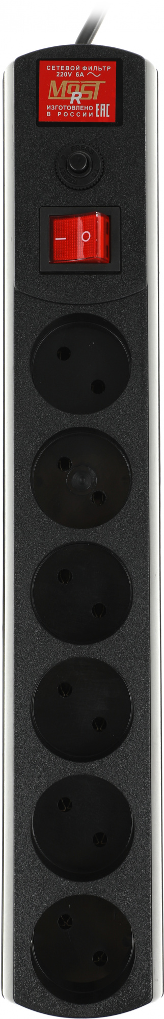 Сетевой фильтр Most R 2м (6 розеток) черный (коробка)