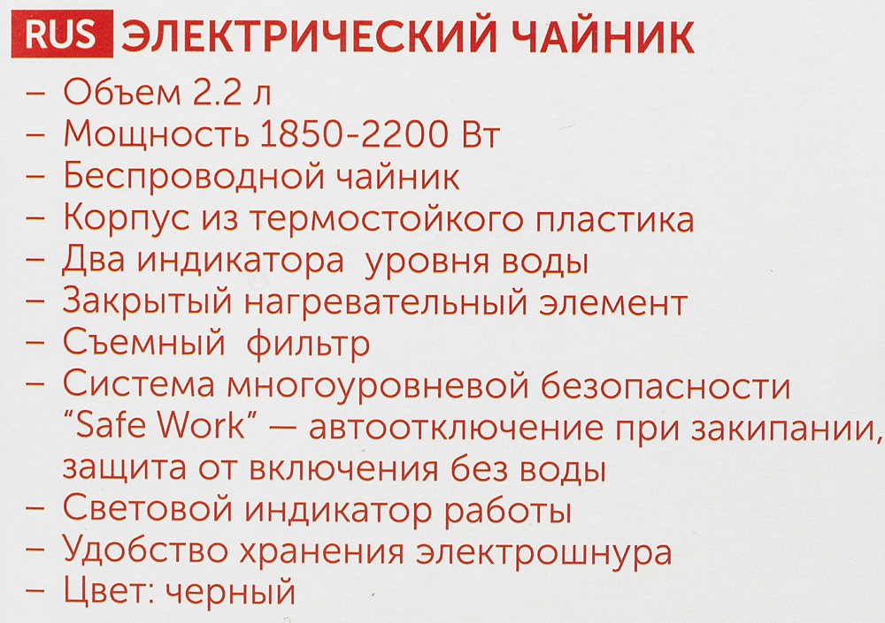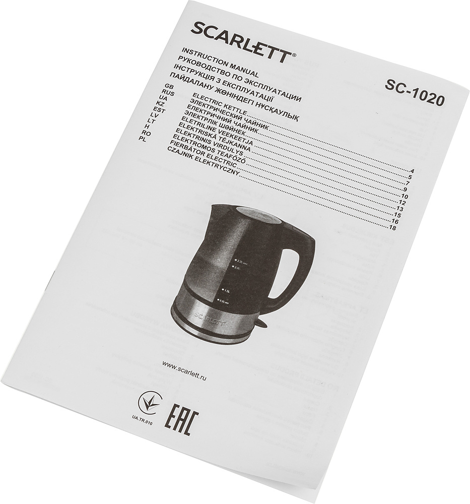 Чайник электрический Scarlett SC-1020 2.2л. 2200Вт черный корпус: пластик (1020)