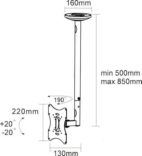 - Особенностирасстояние от потолка - 500-850 мм