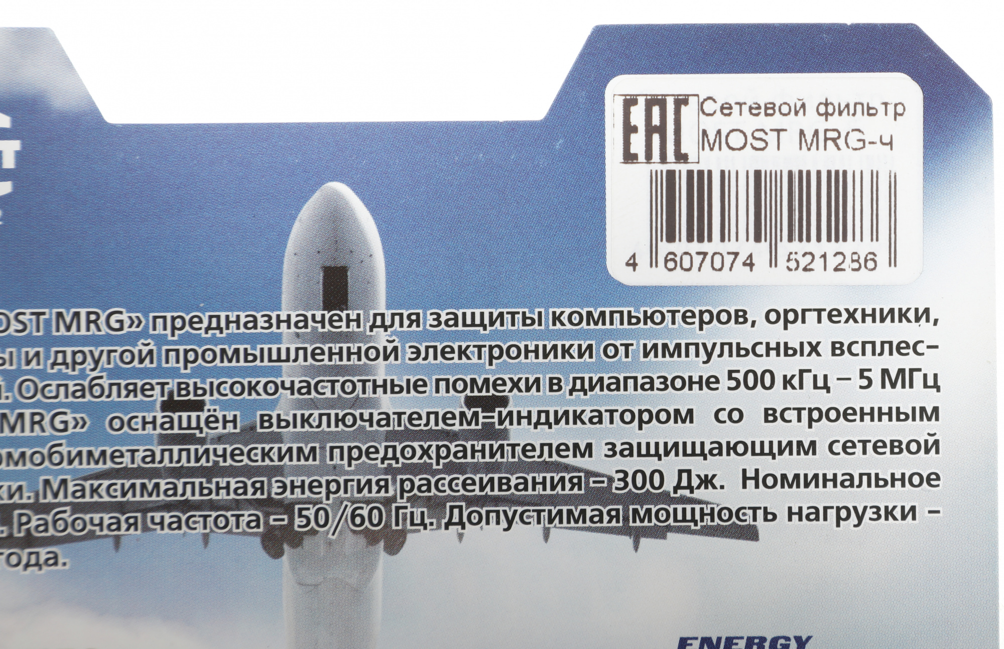 Сетевой фильтр Most MRG (3 розетки) черный (коробка)