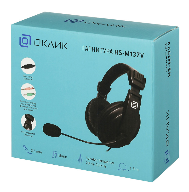 Наушники с микрофоном Оклик HS-M137V черный 1.8м мониторные оголовье (614046)