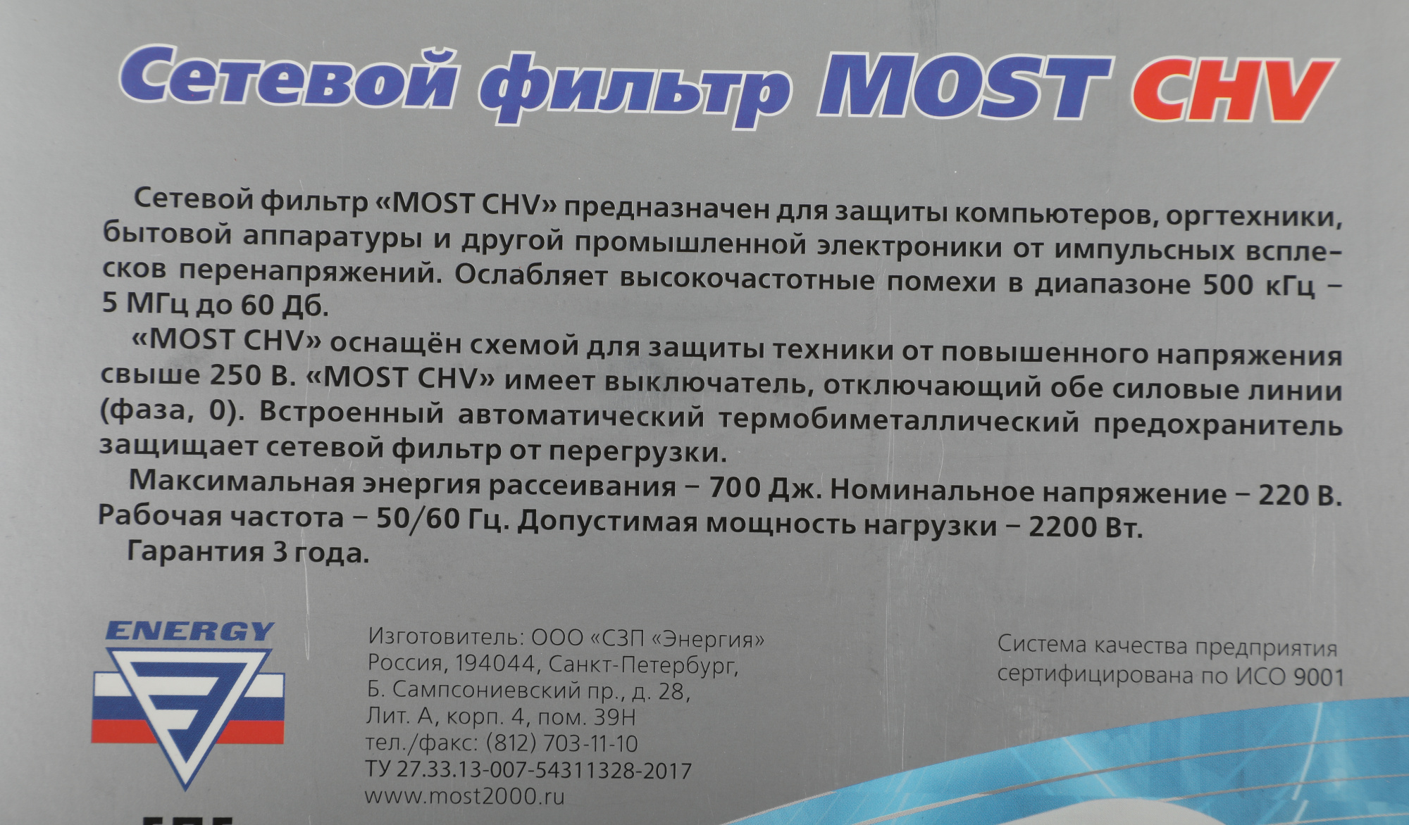 Сетевой фильтр Most CHV 5м (6 розеток) белый (коробка)