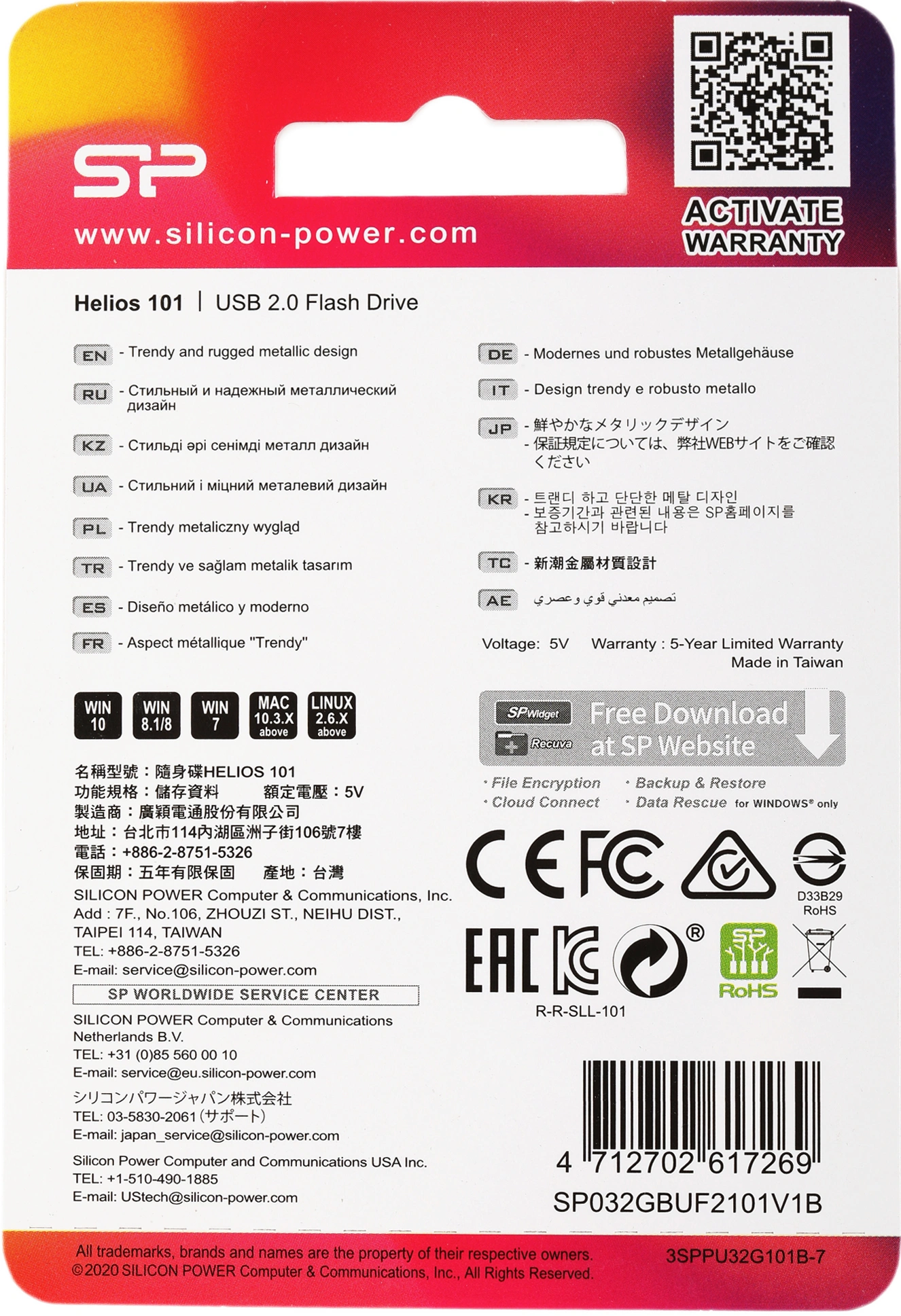 Флеш Диск Silicon Power 32GB Helios 101 SP032GBUF2101V1B USB2.0 синий
