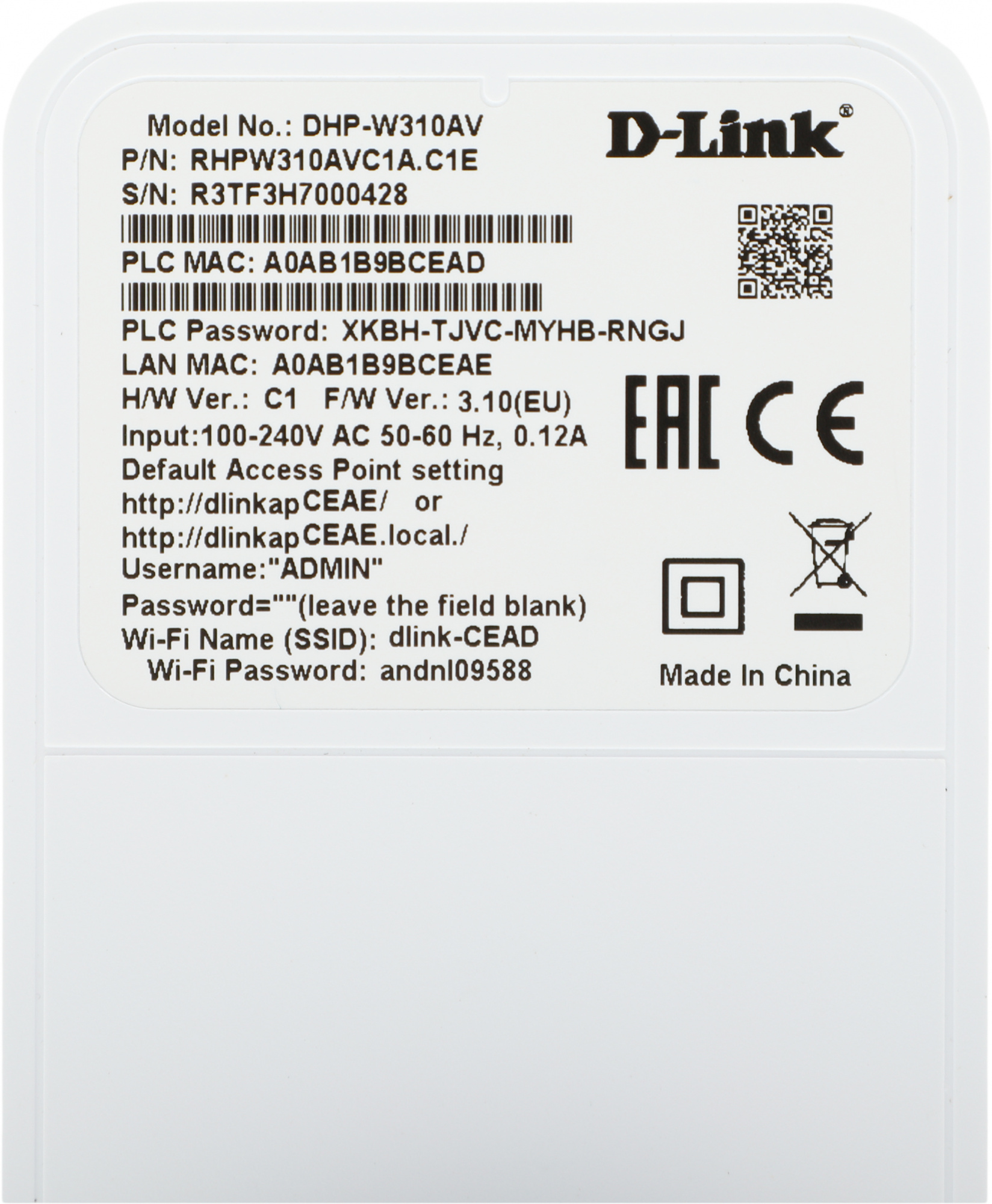 | Код производителя | DHP-W310AV |