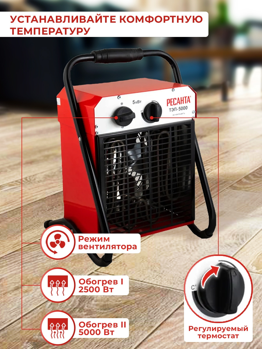 Тепловая пушка электрическая Ресанта ТЭП-5000 5000Вт красный