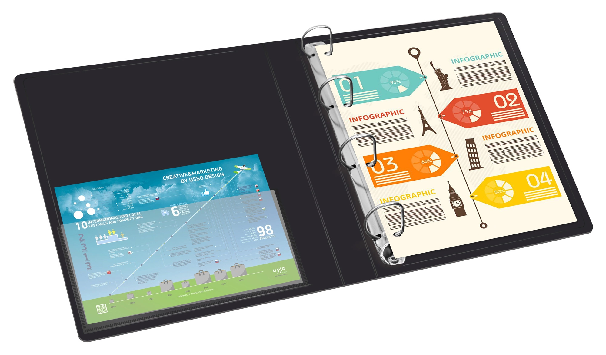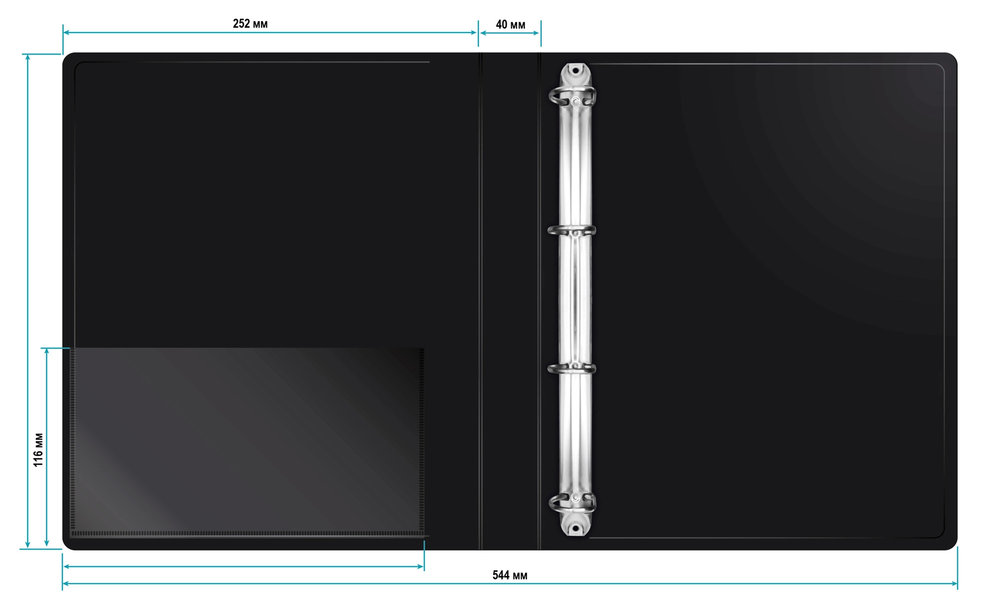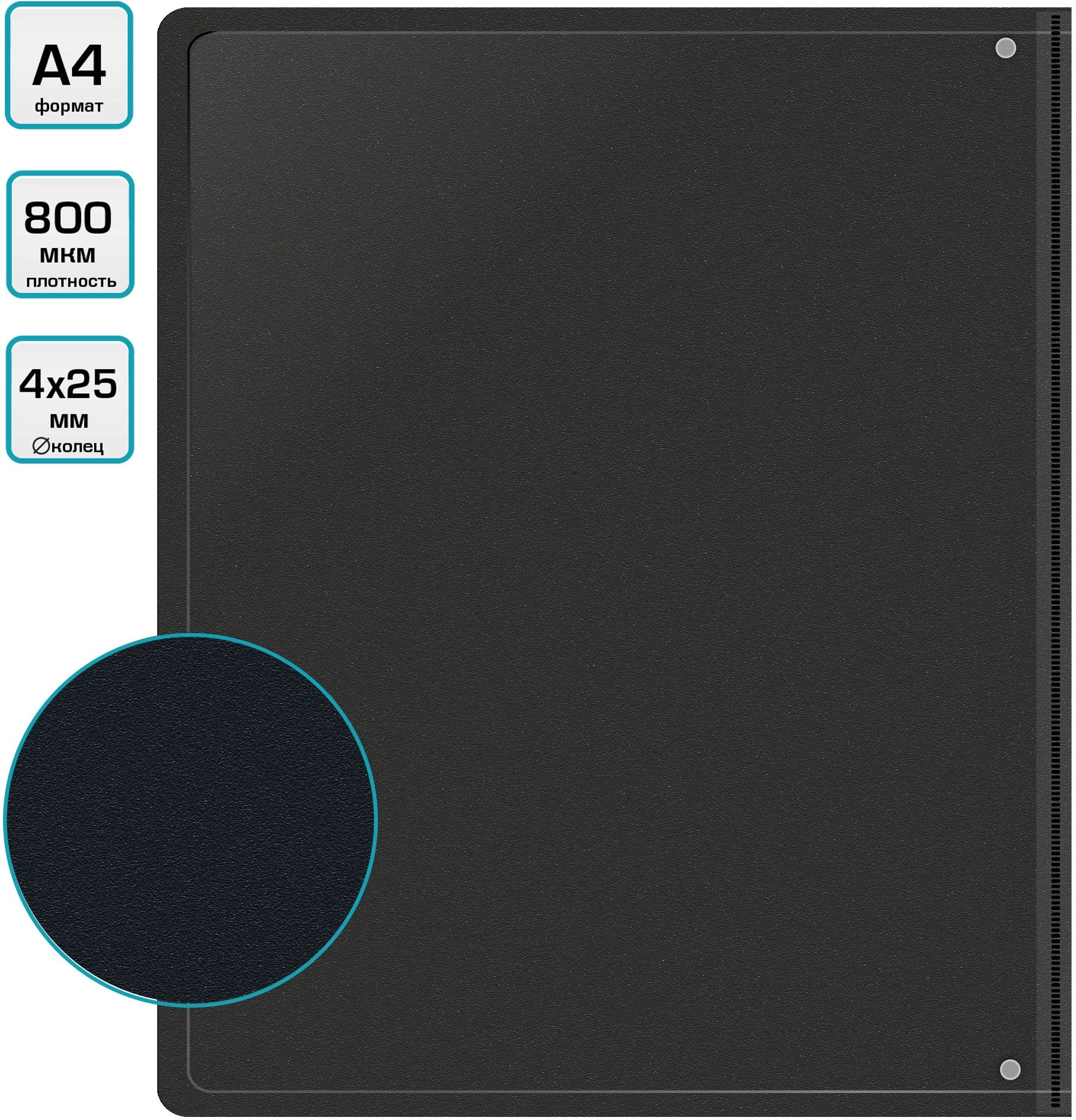 Папка на 4-х D-кольцах Бюрократ -0840/4DBLCK A4 пластик 0.8мм кор.40мм внутр. с вставкой черный