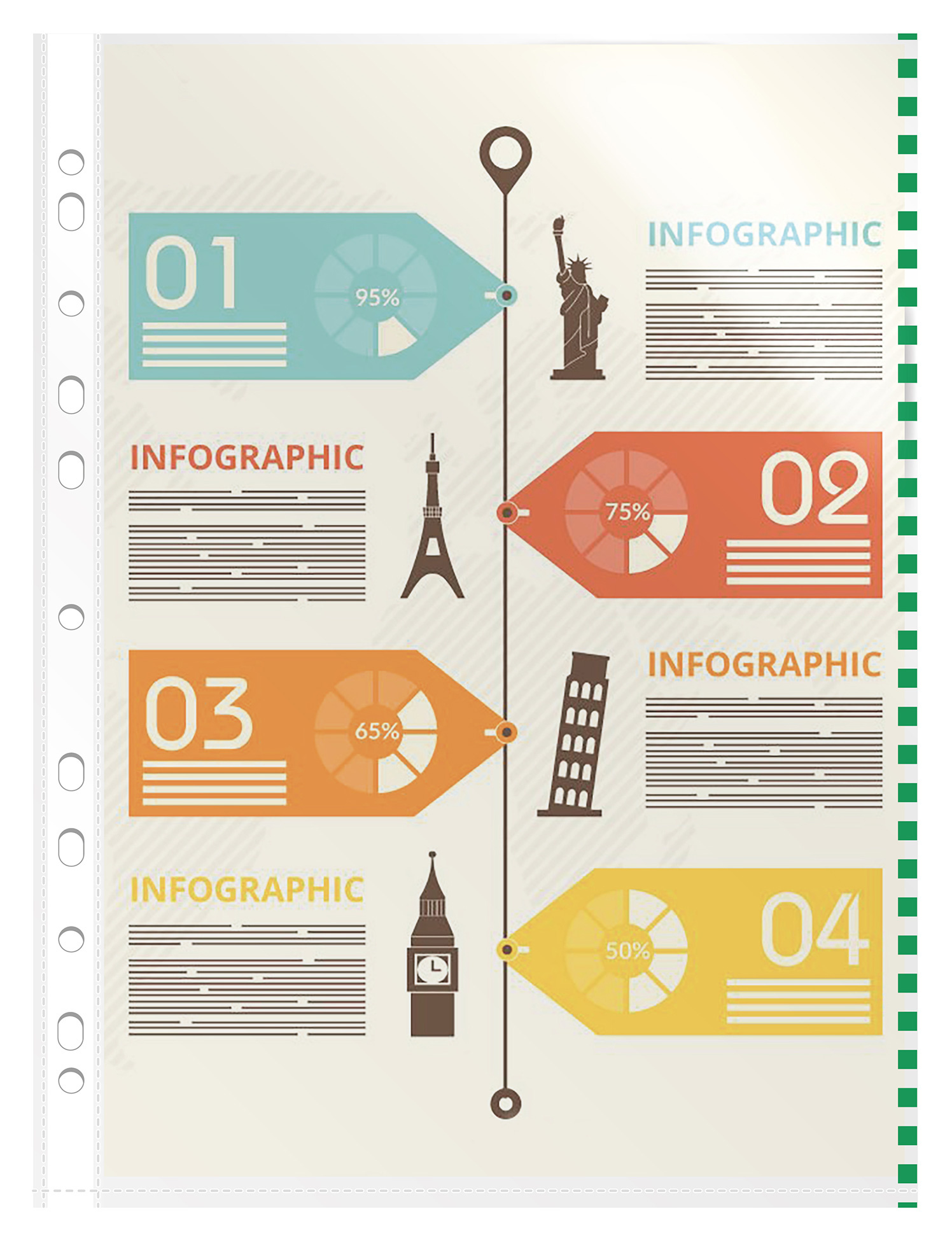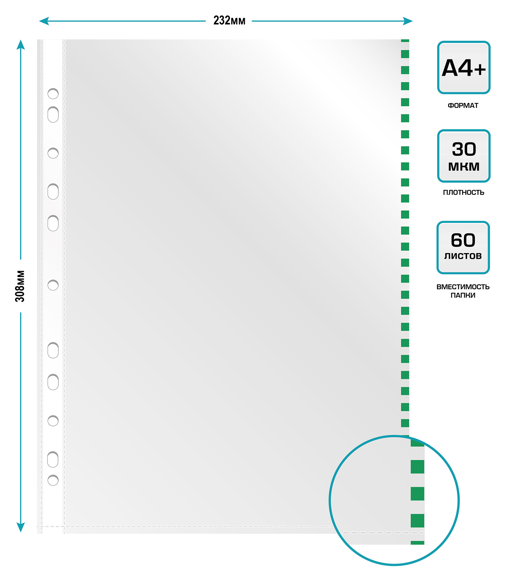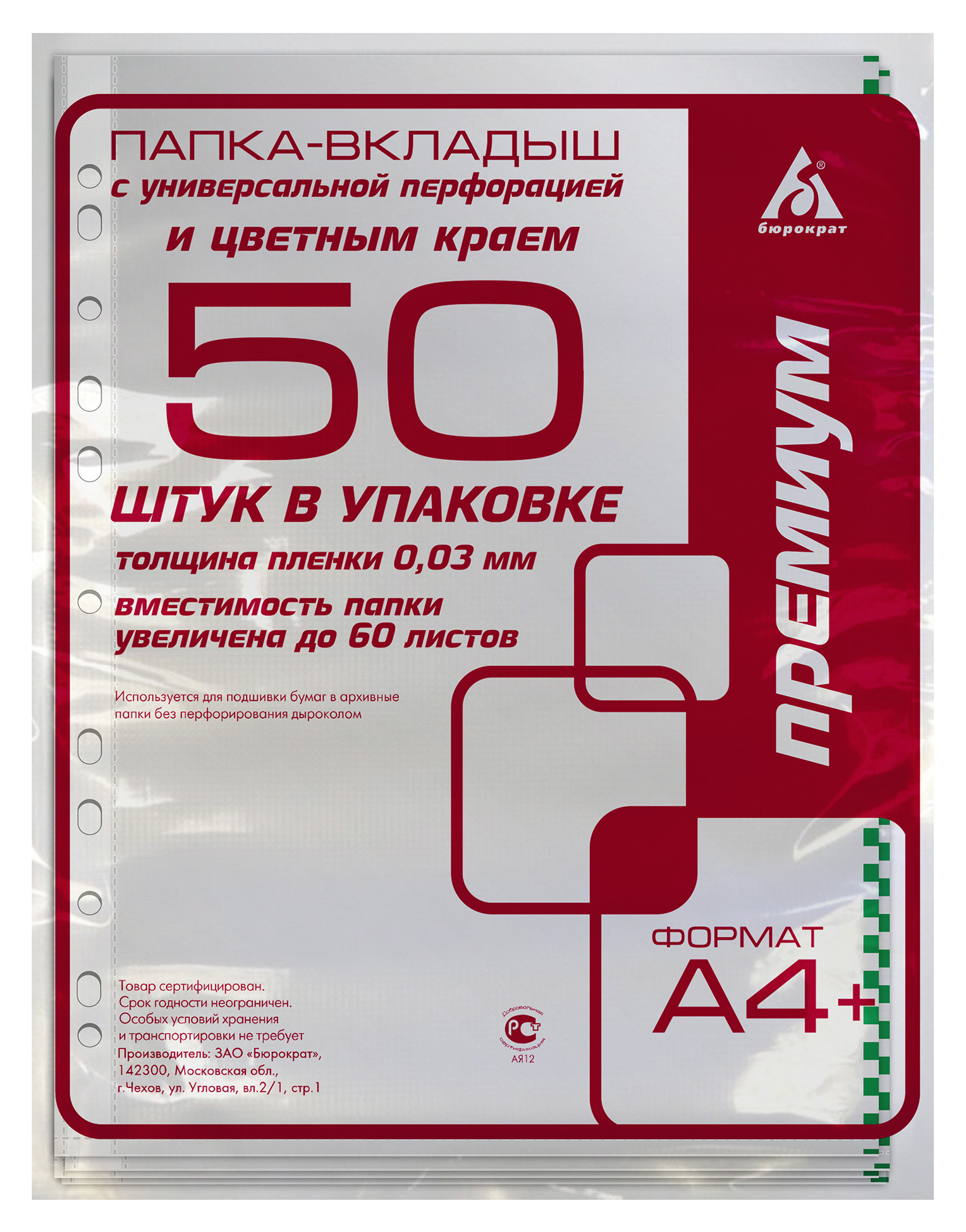 Папка-вкладыш Бюрократ Премиум -013BKAN2GRN глянцевые A4+ 30мкм зеленый край (упак.:50шт)