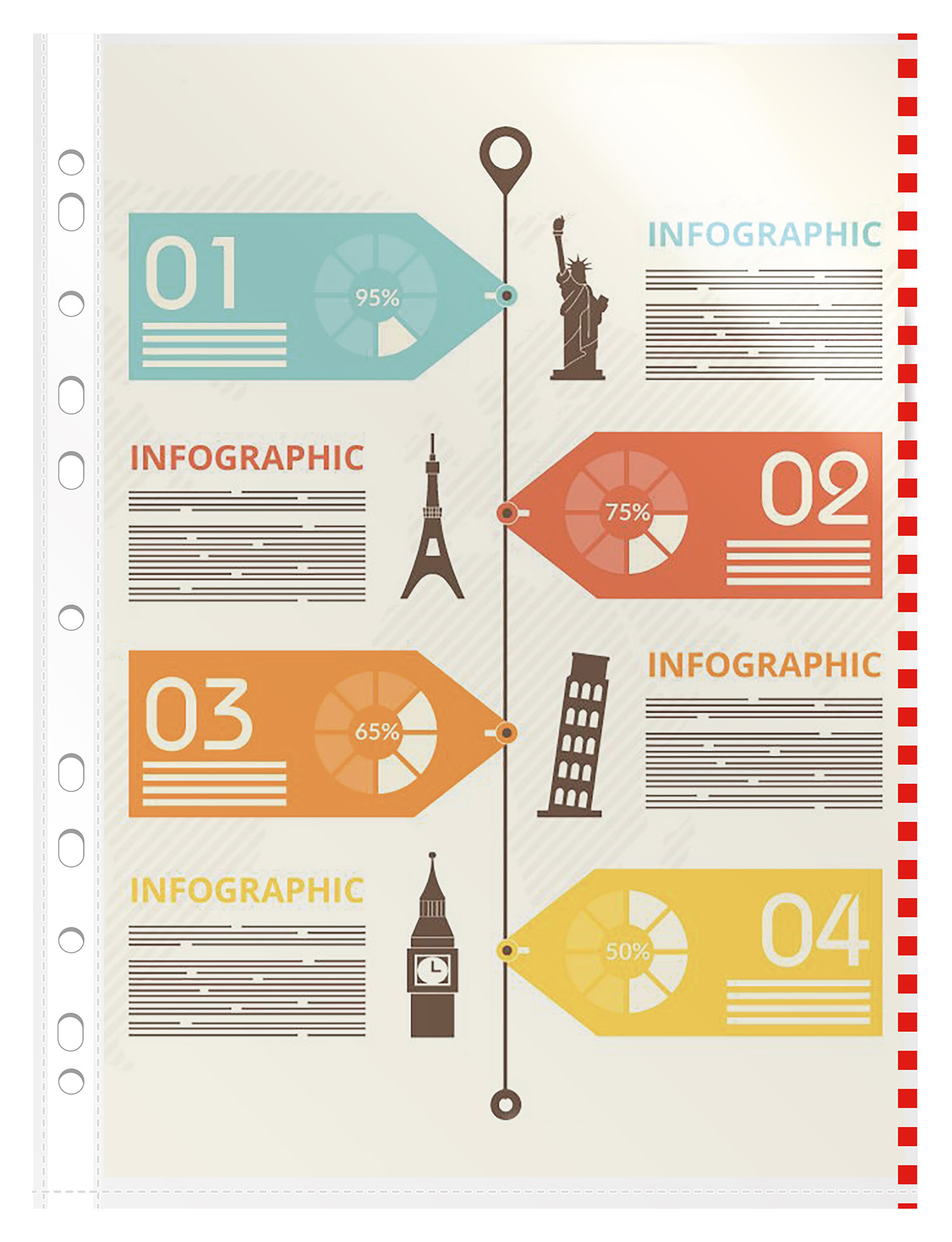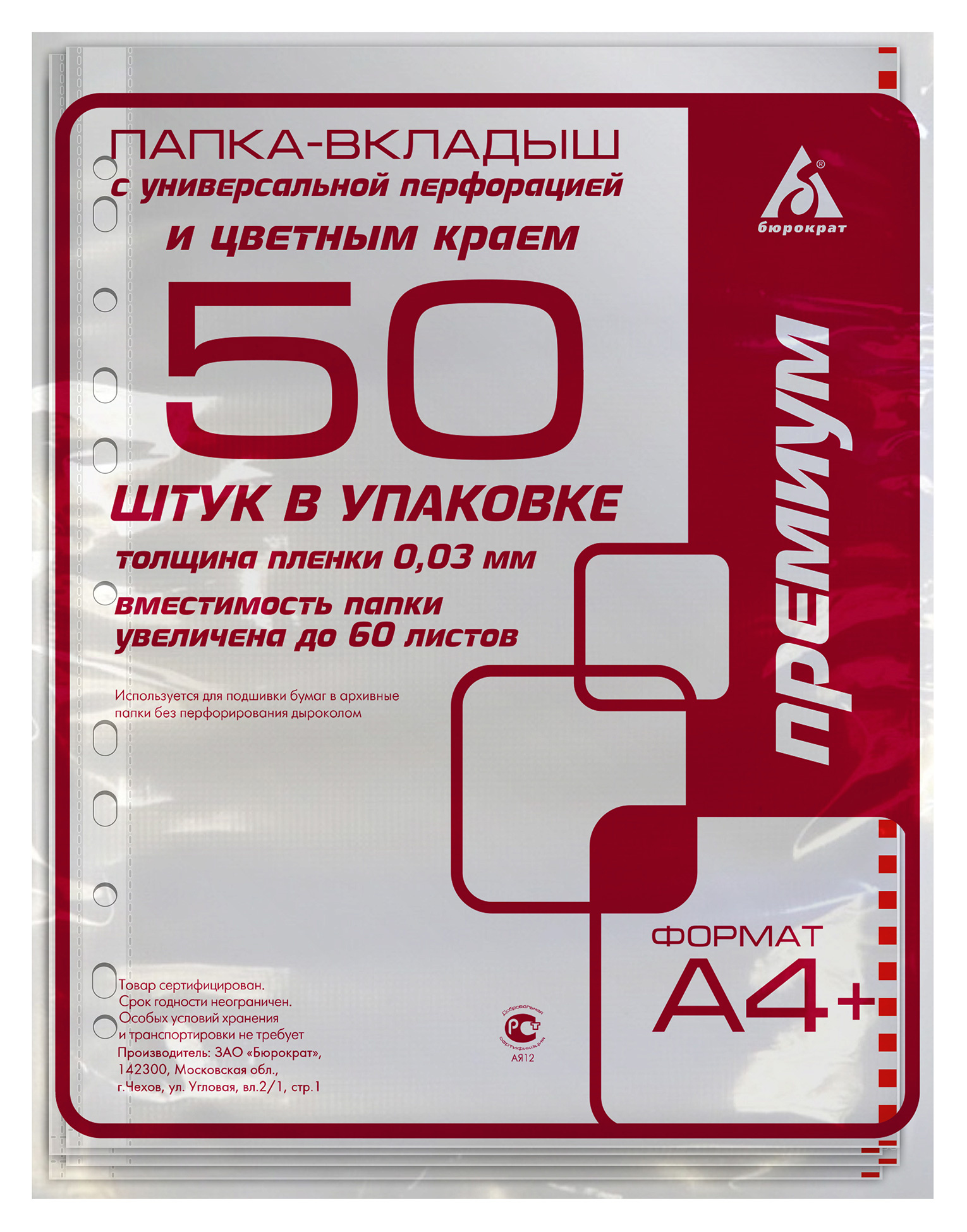 Папка-вкладыш Бюрократ Премиум -013BKAN2RED глянцевые A4+ 30мкм красный край (упак.:50шт)