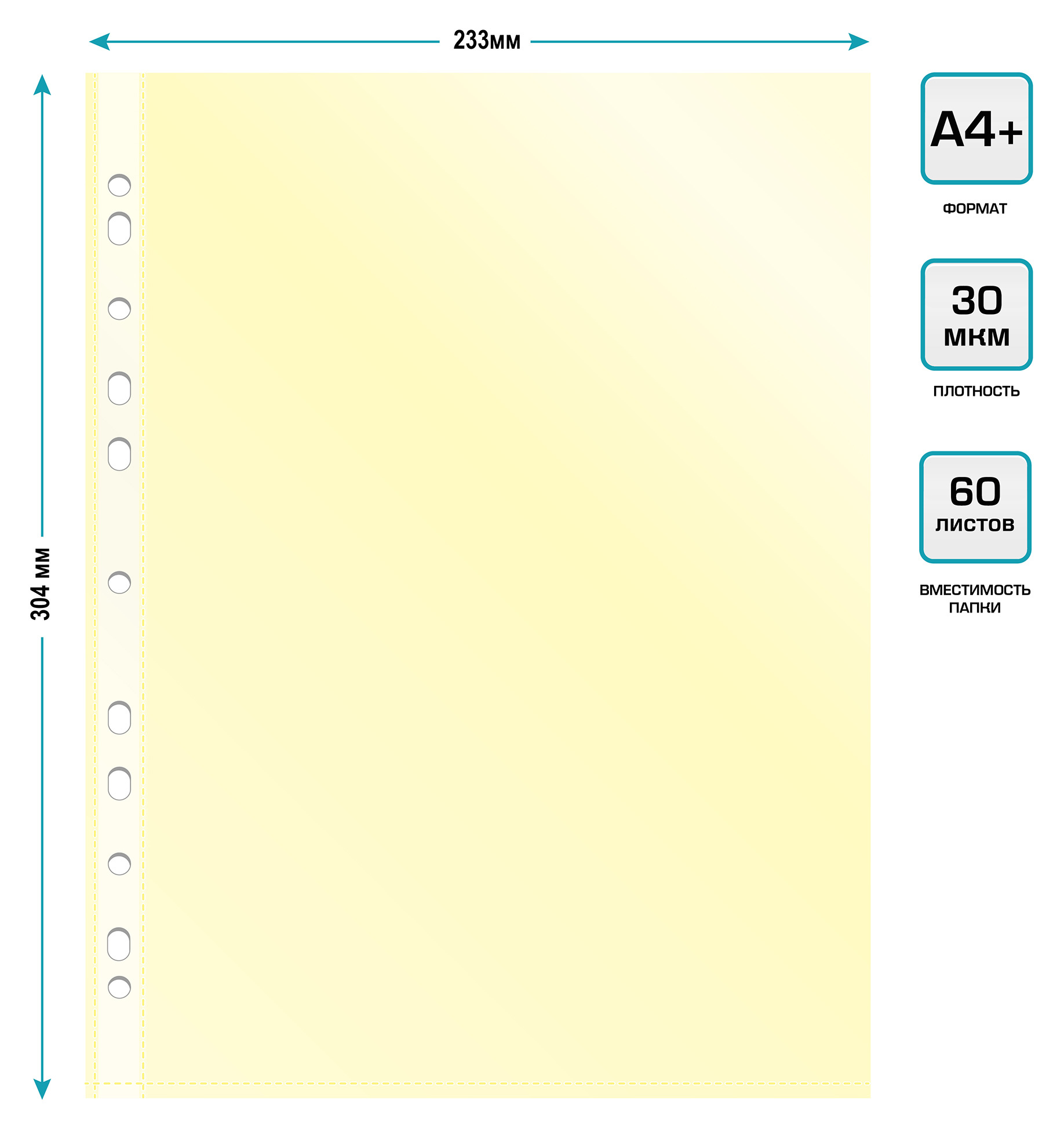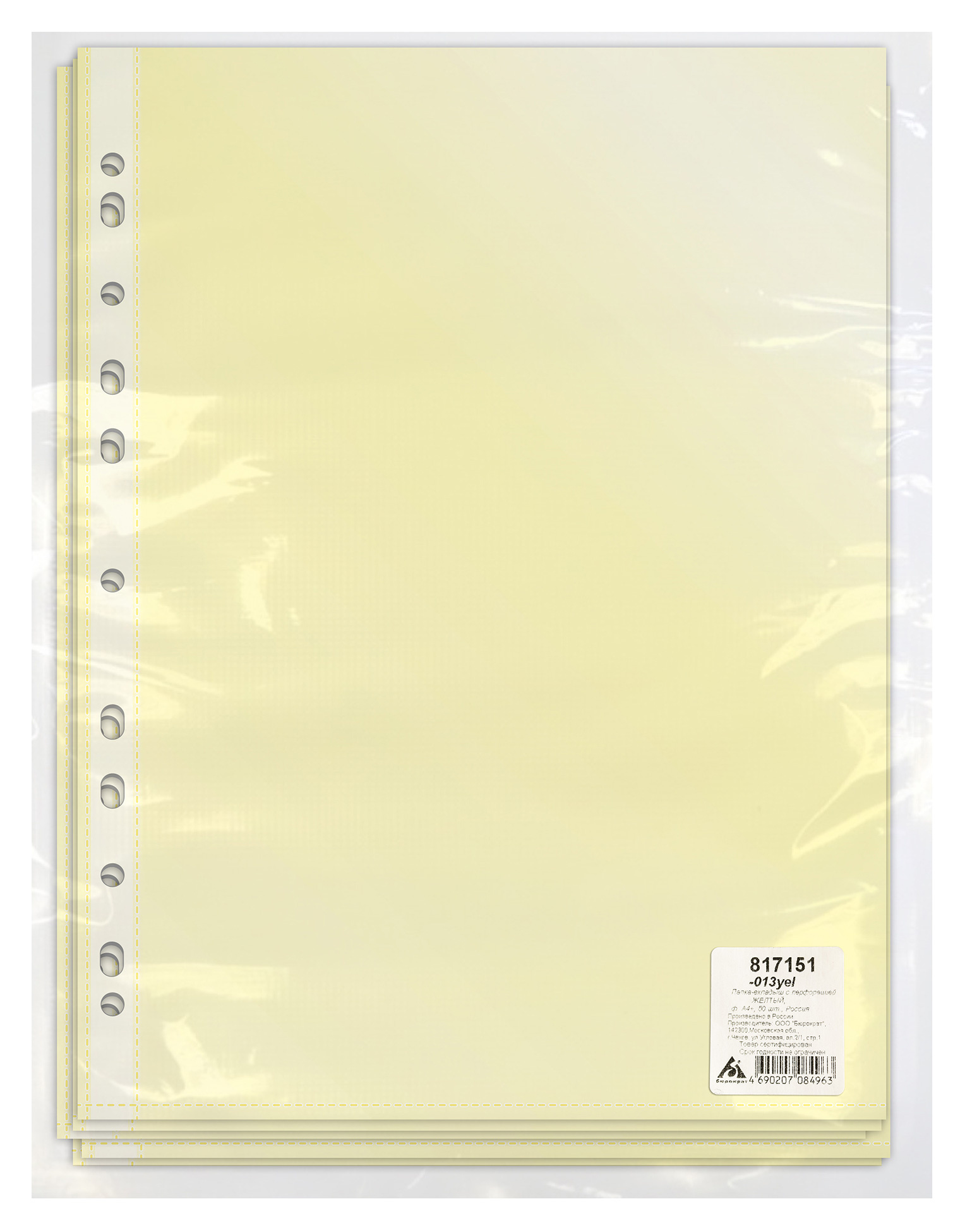 Папка-вкладыш Бюрократ Премиум -013YEL желтый глянцевые A4+ 30мкм (упак.:50шт)