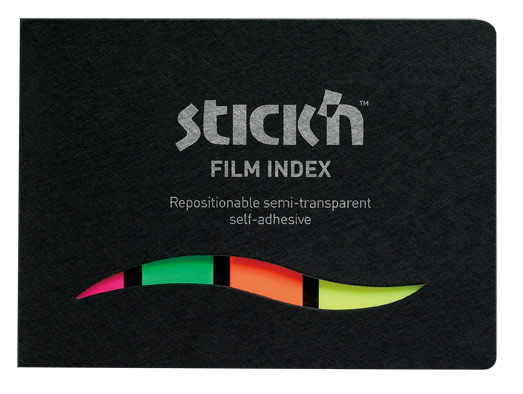 Закладки самокл. индексы пластиковые Stick`n 21077 4цв.в упак. 25лист в обложке 25x45мм+12x45мм европодвес
