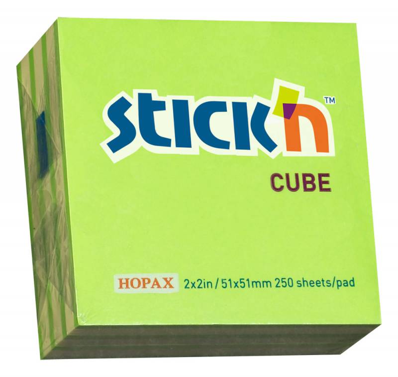 Блок самоклеящийся бумажный Stick`n 21339 51x51мм 250лист. 70г/м2 неон+пастель зеленый 2цв.в упак.