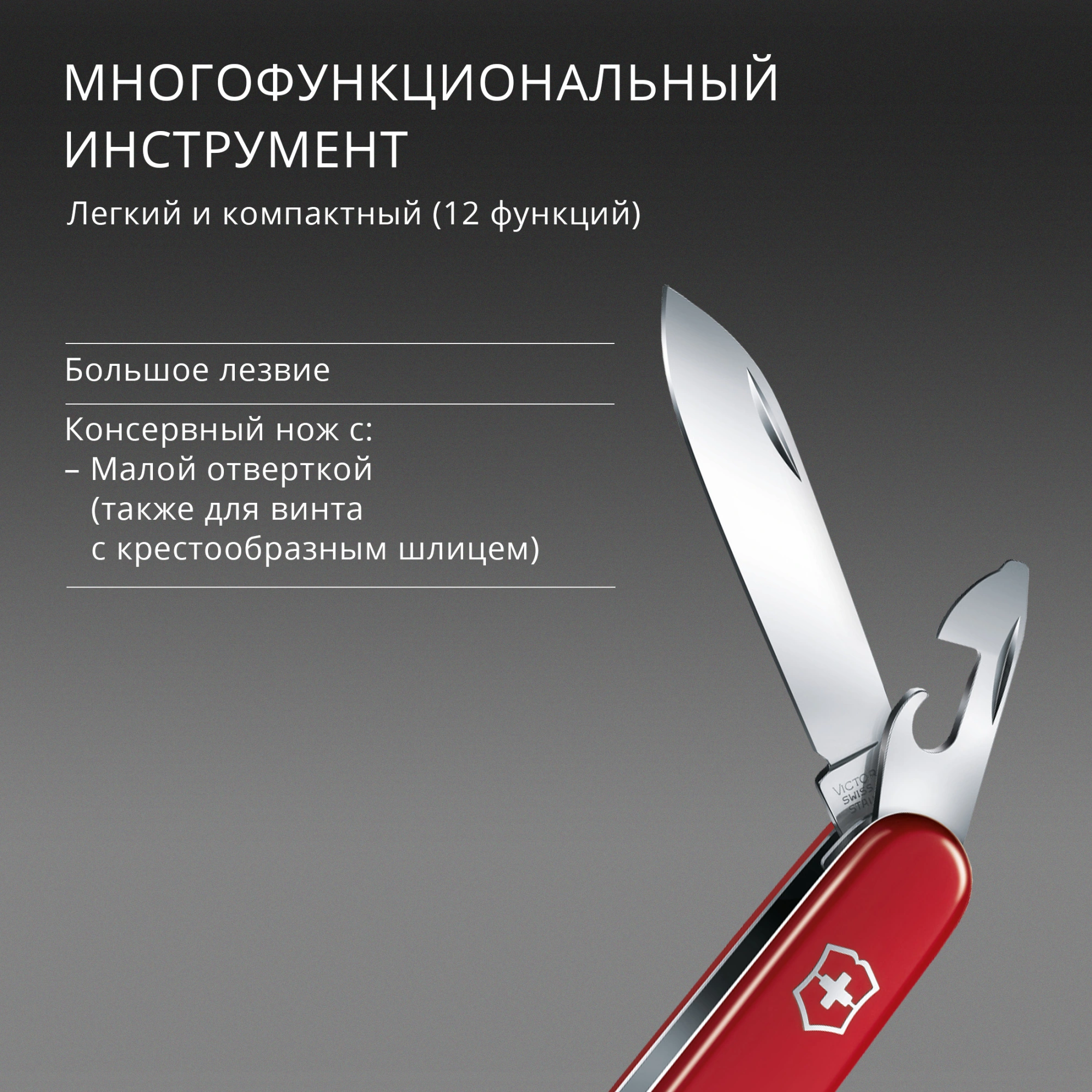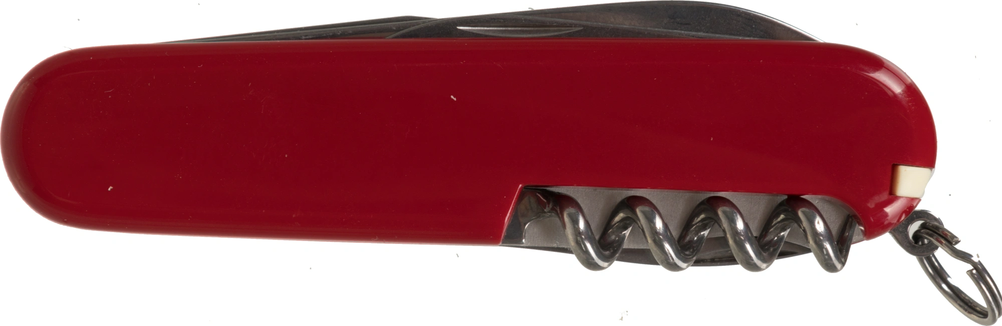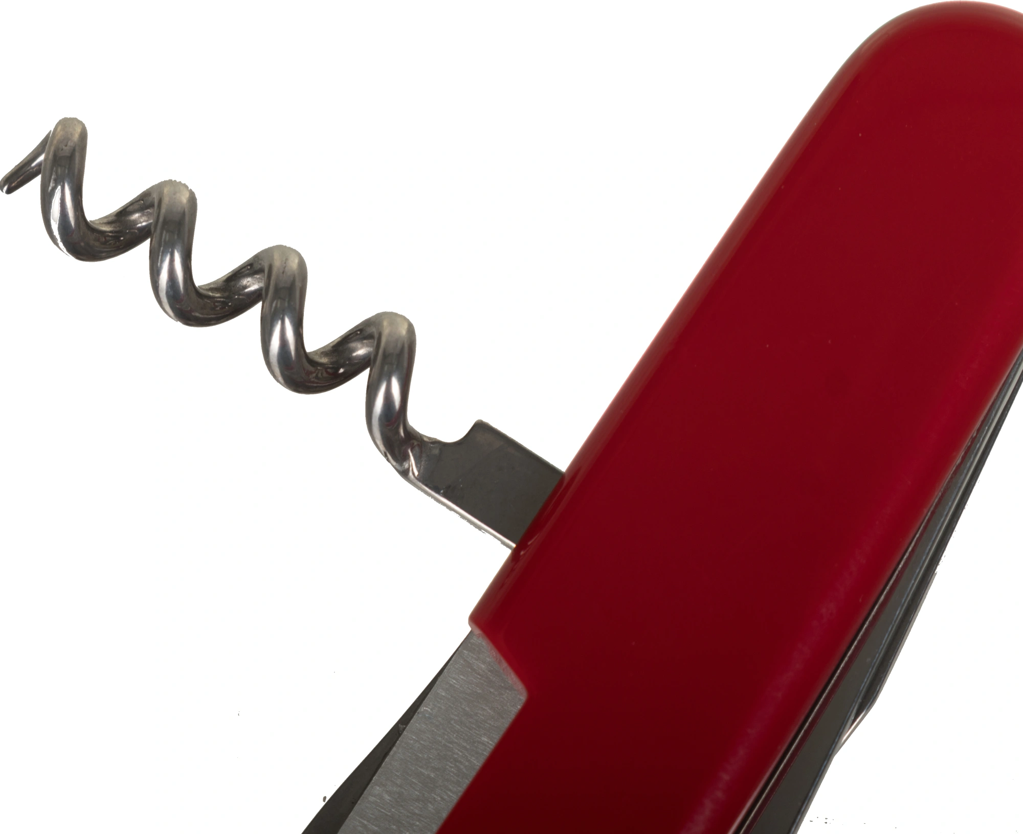 - Список функцийБольшое лезвие, малое лезвие, штопор, консервный нож с малой отверткой (также для винта с крестообразным шлицем), открывалка для бутылок с отверткой и инструментом для снятия изоляции, шило, кернер, кольцо для ключей, пинцет, зубочистка.