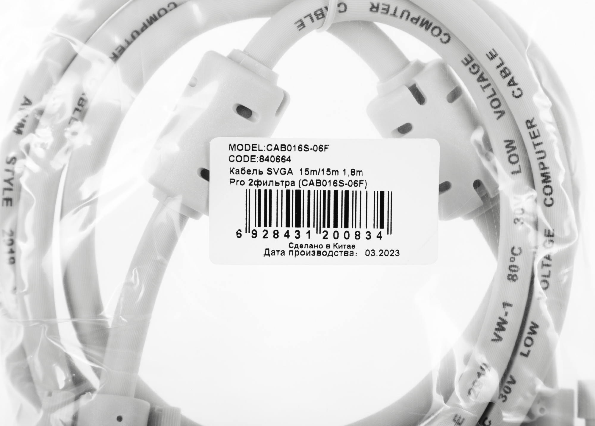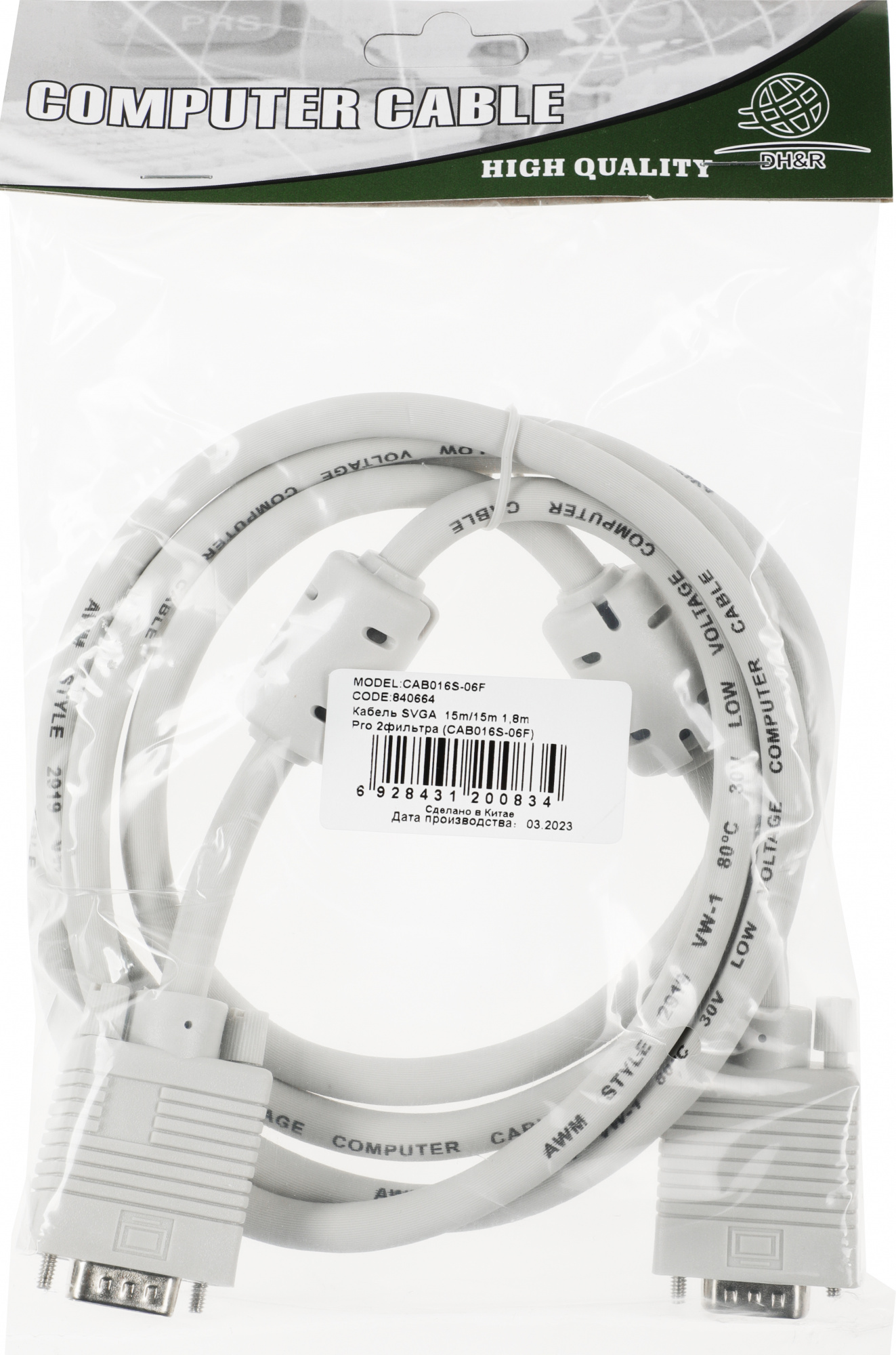 Кабель Ningbo CAB016S-06F VGA (m) VGA (m) 1.8м феррит.кольца