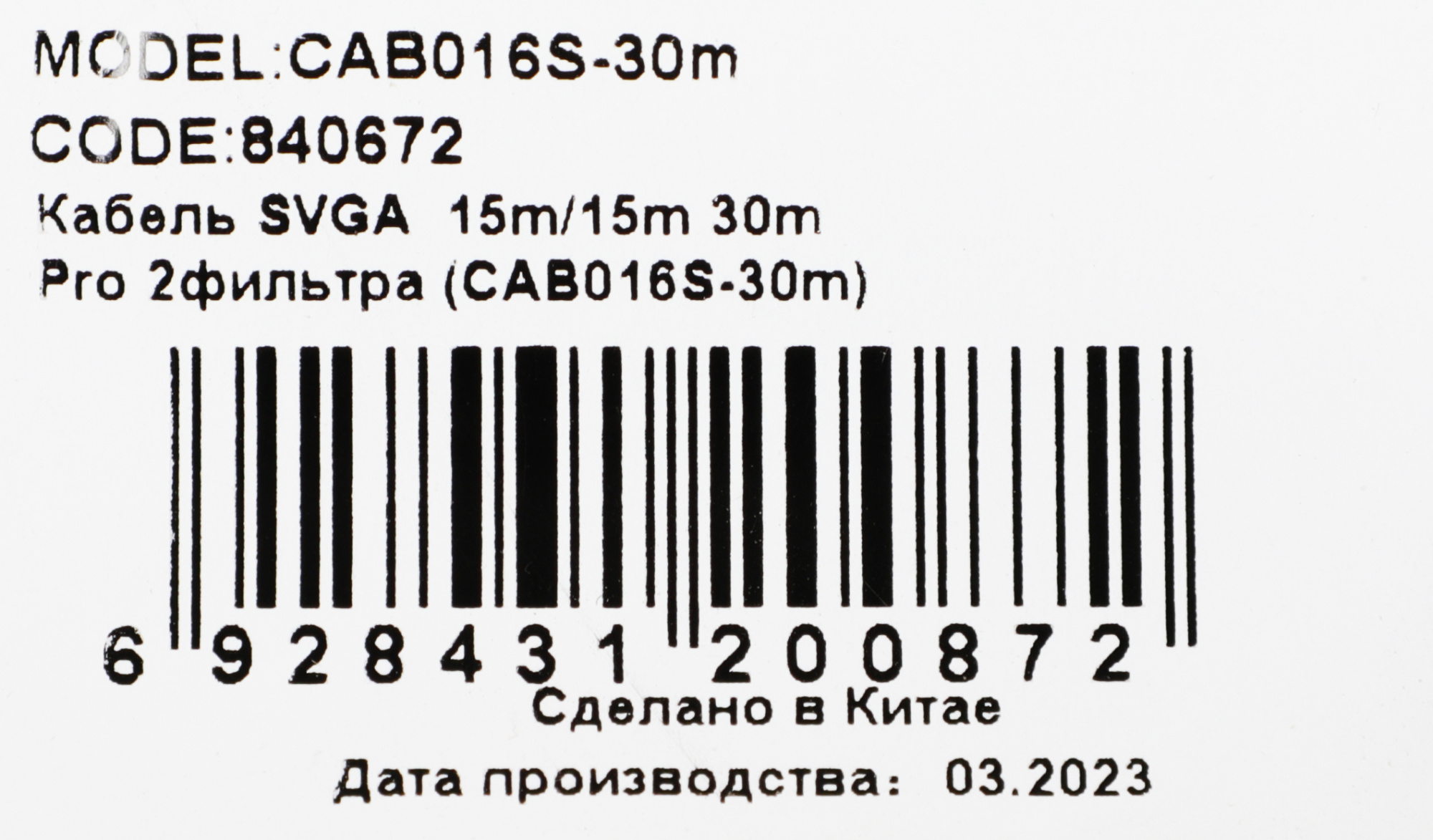 VGA кабель длиной 30 метров, дающий огромные возможности по размещению оборудования в больших помещениях. Встроенные ферритовые кольца блокируют помехи искажающие идущий по проводу сигнал, таким образом повышая его качество.
