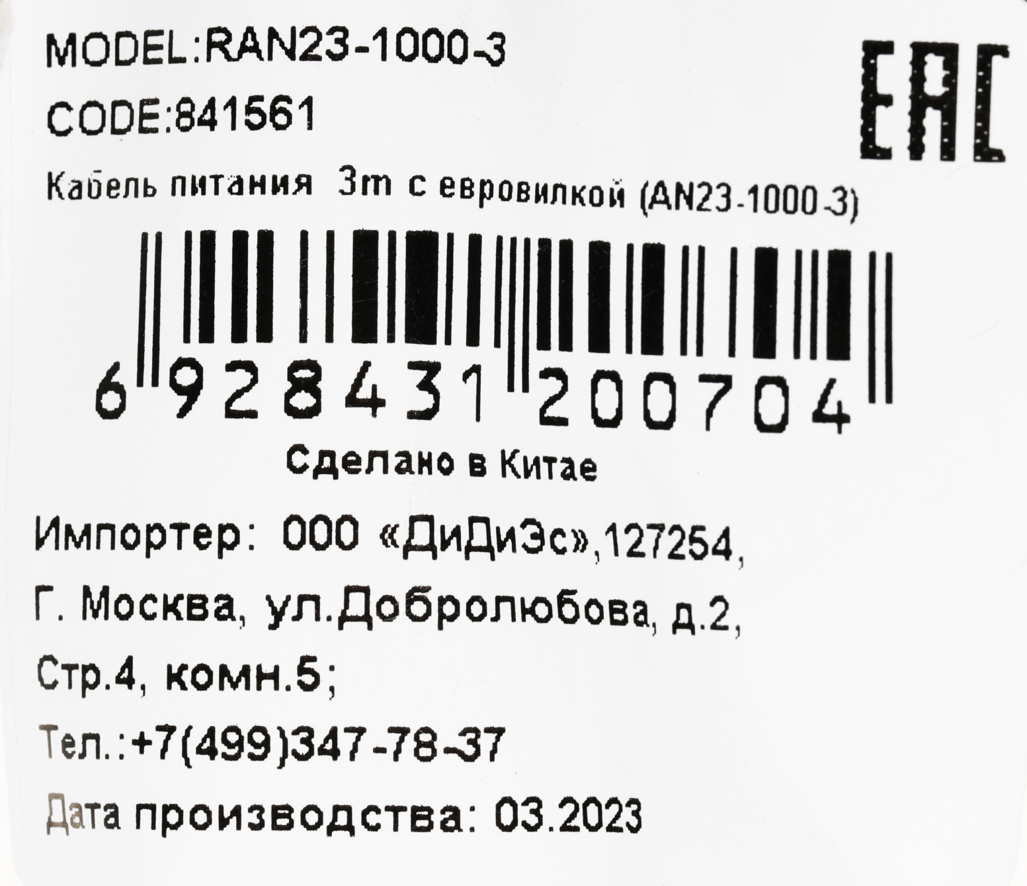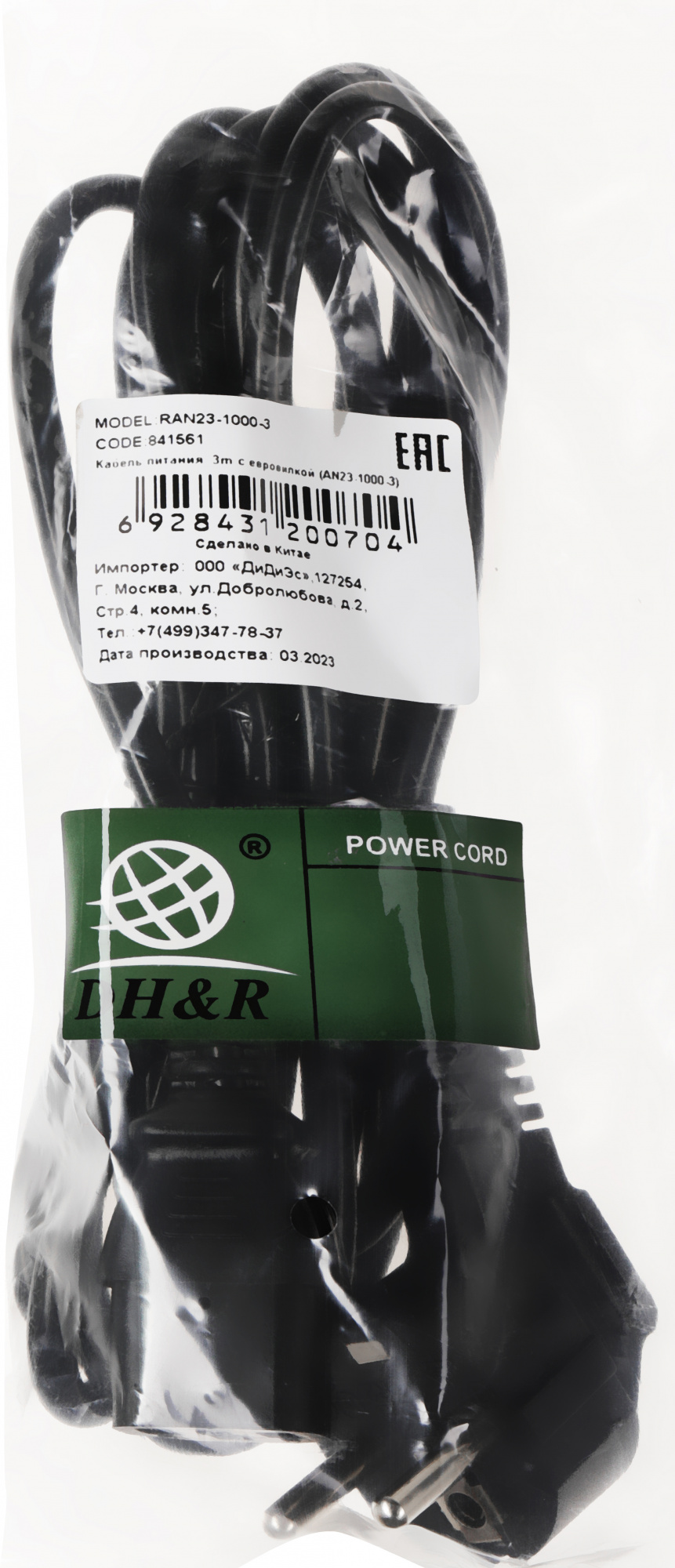 Кабель Ningbo AN23-1000-3 Евровилка IEC C13 3м черный