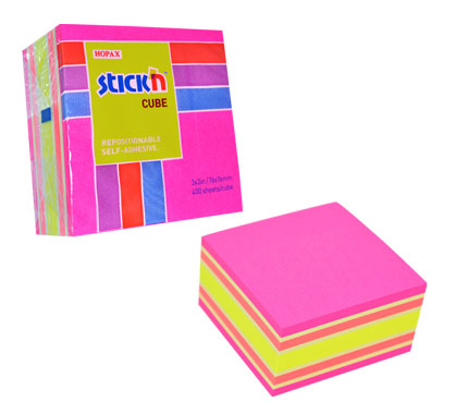 Блок самоклеящийся бумажный Stick`n 21536 76x76мм 400лист. 70г/м2 неон+пастель 4цв.в упак.