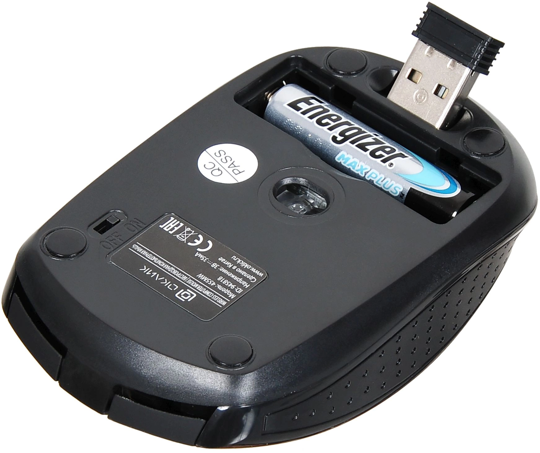 - КомплектацияБеспроводная компьютерная мышь 455MW, Компактный USB-приемник, убирающийся в корпус, 2 батарейки стандарта AAA