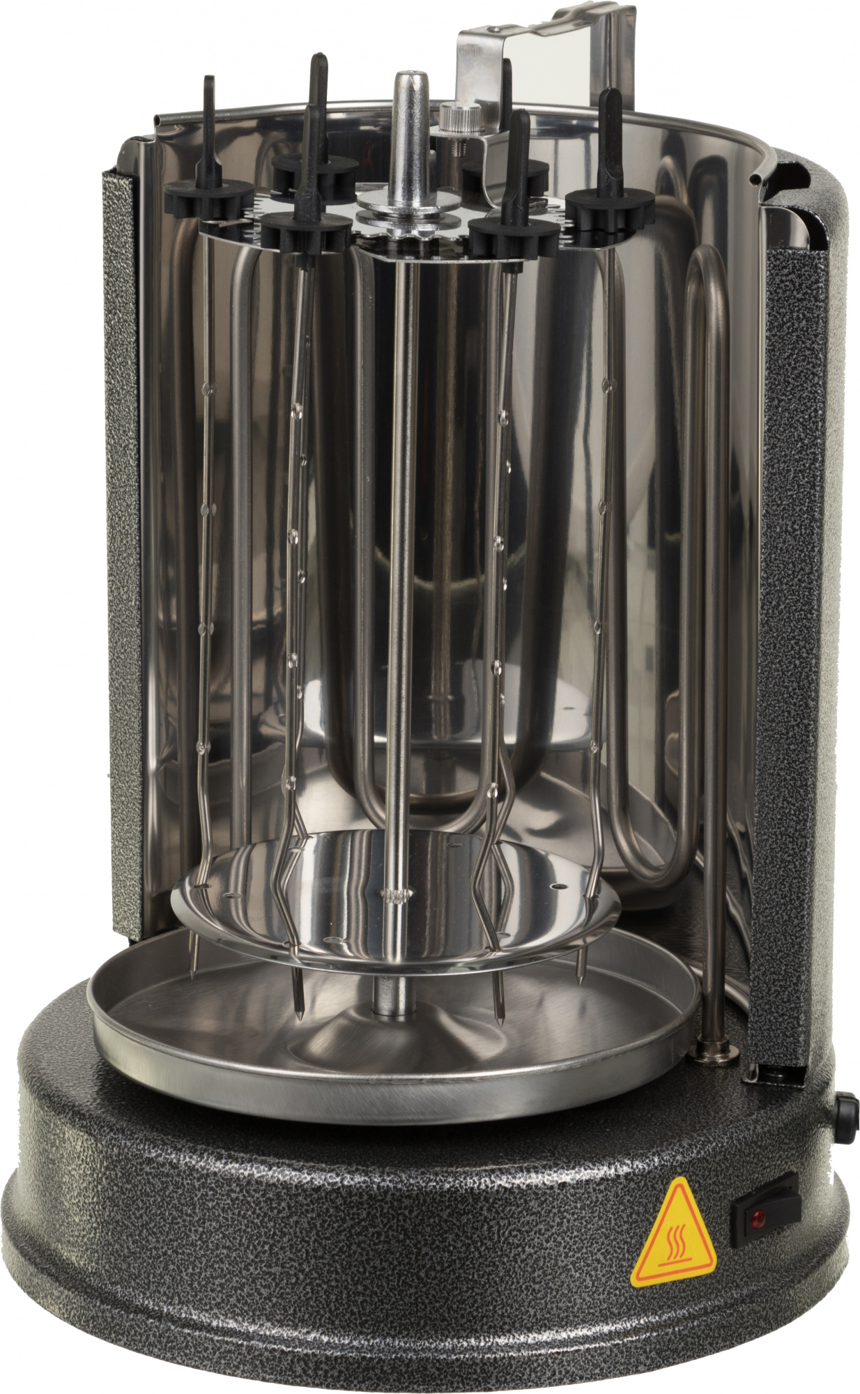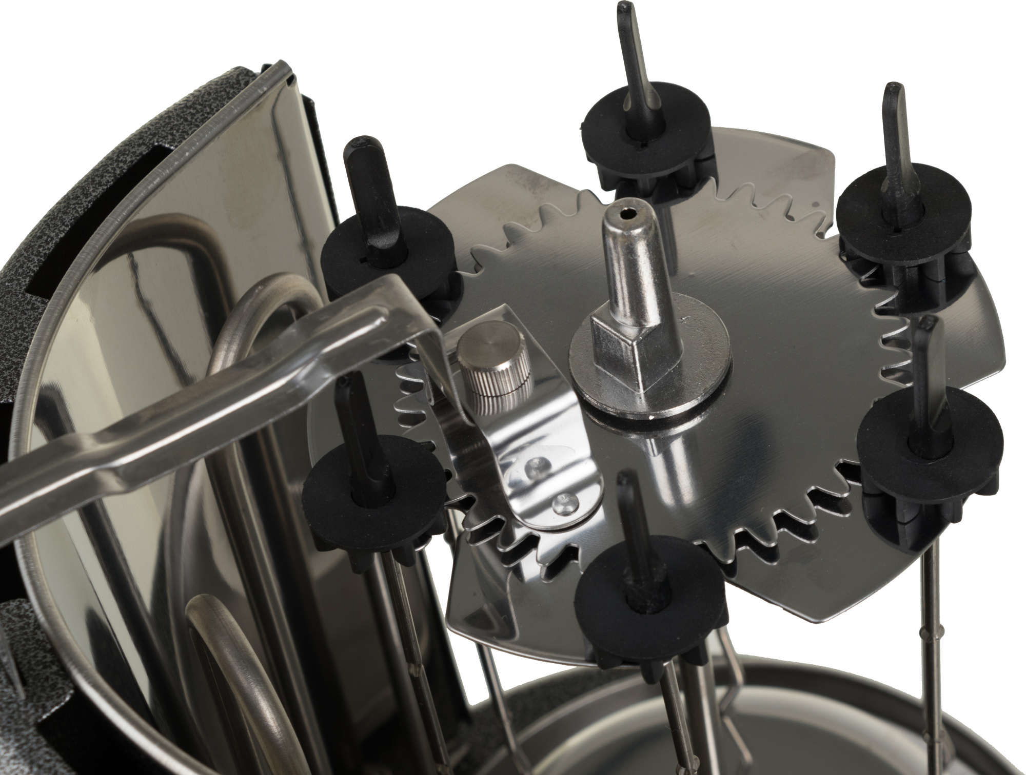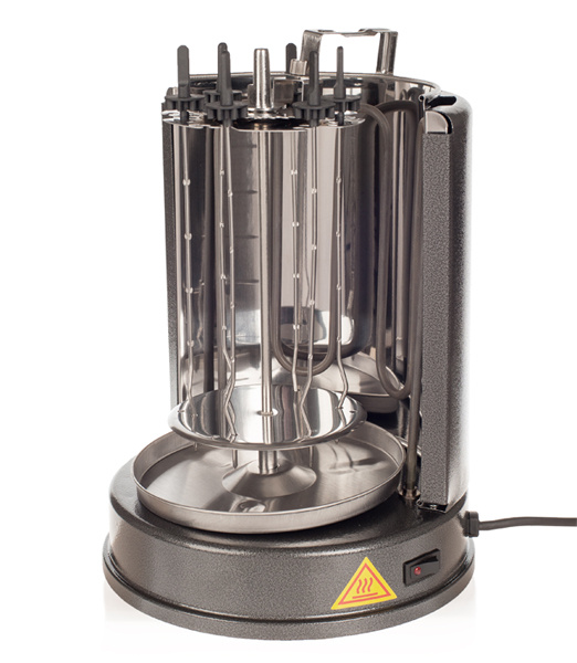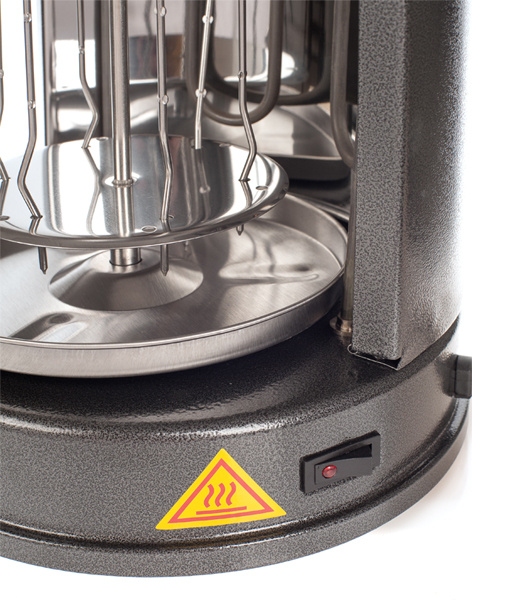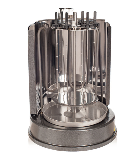 - Особенности6 шампуров из нержавеющей стали медленно вращаются, обеспечивая равномерную обжарку. Под шампурами расположена металлическая чаша для сбора стекающего жира.