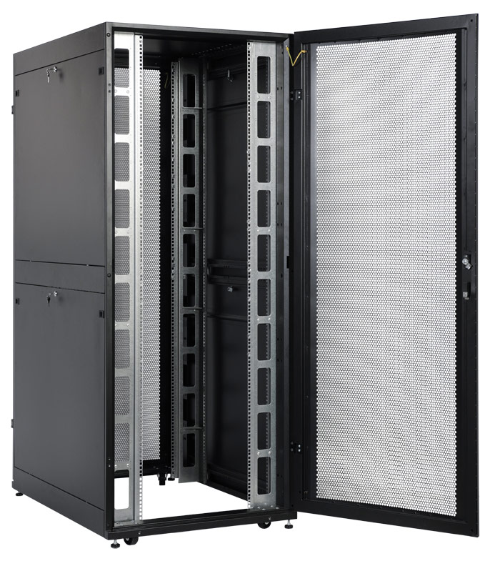 Шкаф серверный ЦМО (ШТК-СП-48.8.12-48АА-9005) напольный 48U 800x1130мм пер.дв.перфор. задн.дв.перфор.2-хст. 2 бок.пан. направл.под закл.гайки 1350кг черный 890мм 170кг 180град. 2215мм