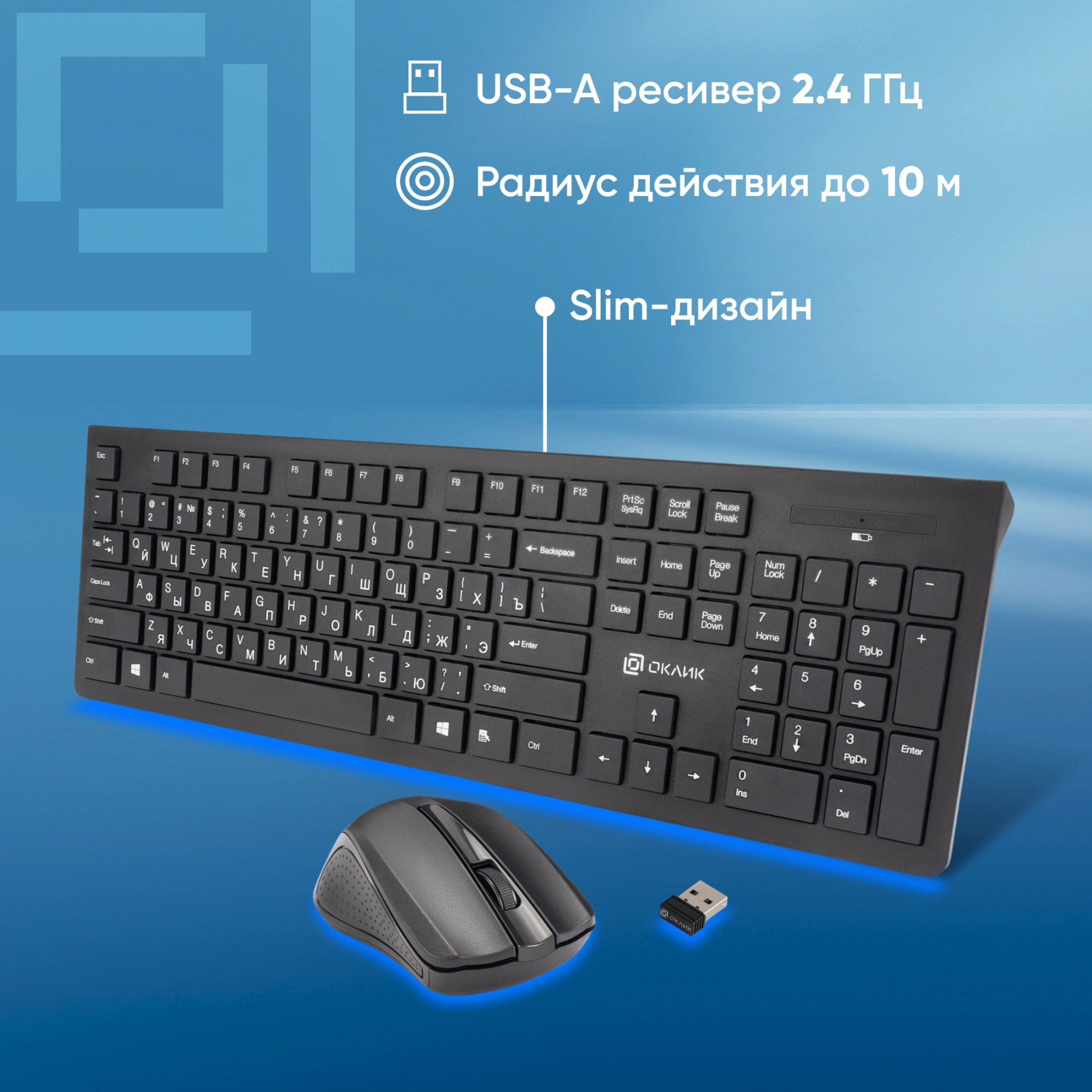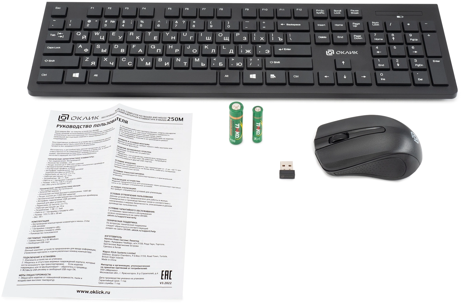 Клавиатура + мышь Оклик 250M клав:черный мышь:черный USB беспроводная slim (997834)